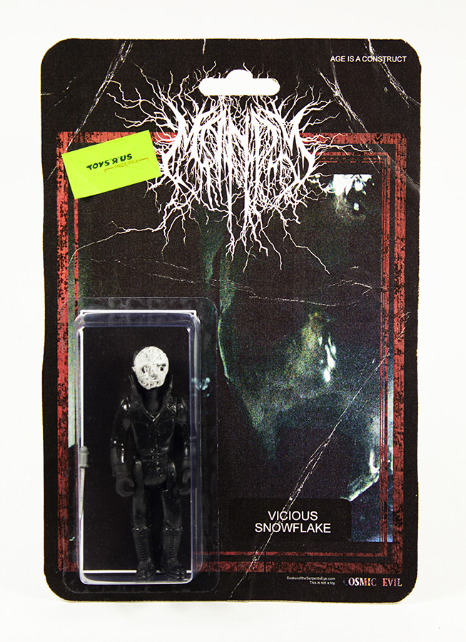 Cos McEvil Presents limited action figures, toys and games based on the cult hit Mandy, starring Nic Cage and Directed by Panos Cosmatos. This series of carded figures are based on the Fisher Price Adventure People line from the 1970's. Each figure is carded, signed and numbered. Each piece in the series is handmade, painted and designed by Cos McEvil and is the first collection produced by Cosmic Evil Toys.