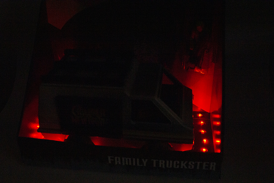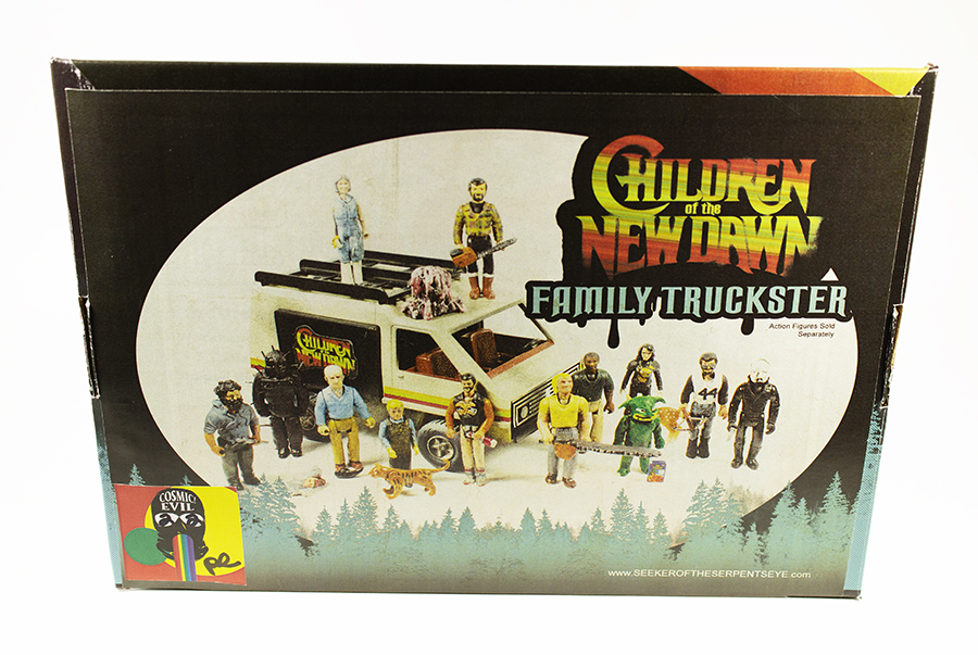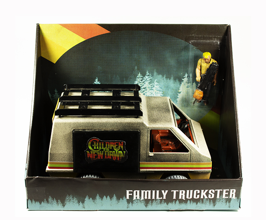 Truckster comes fully loaded with red LED lights, 15 quotes from the film with the push of a button and a free Children of the New Dawn Action figure!