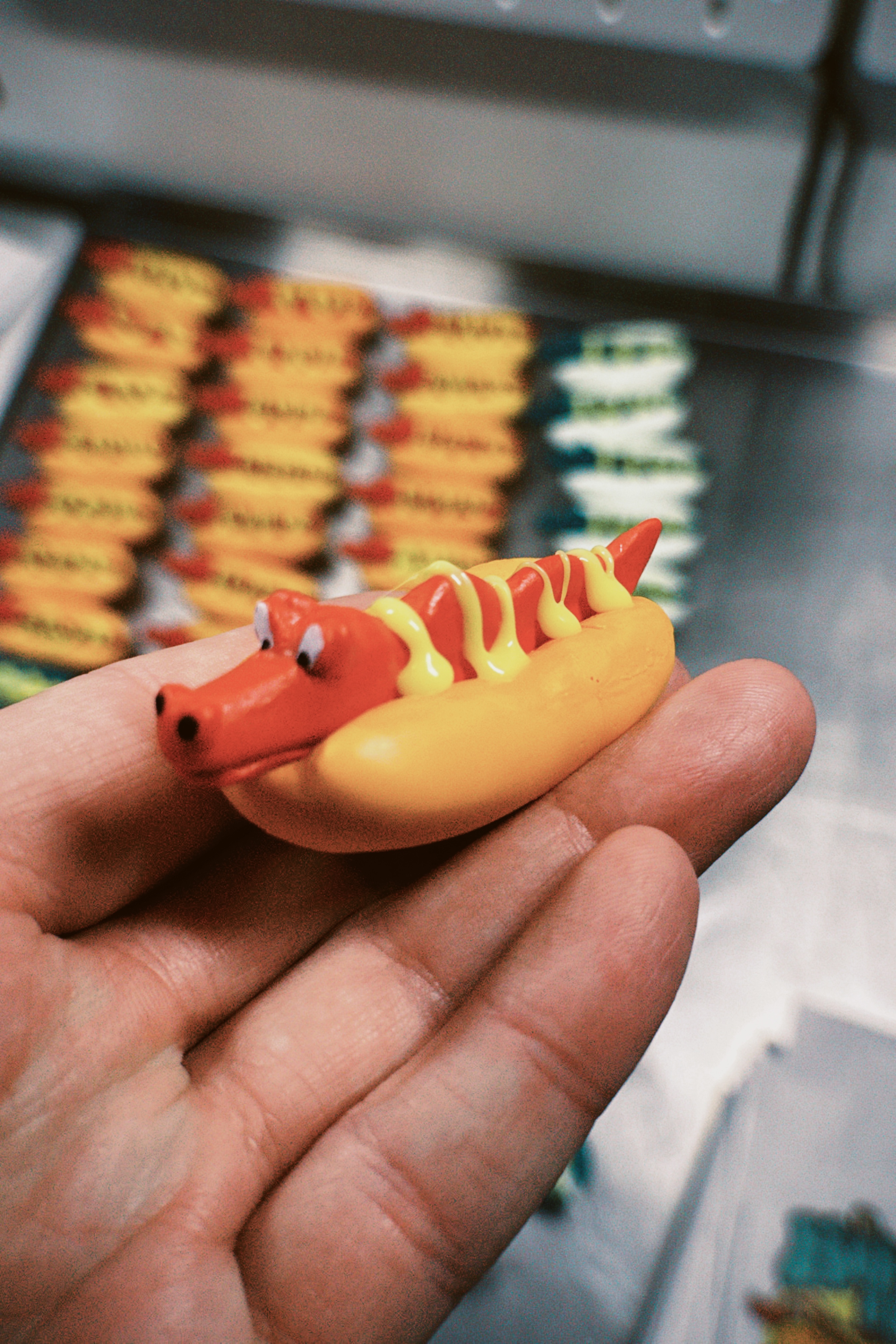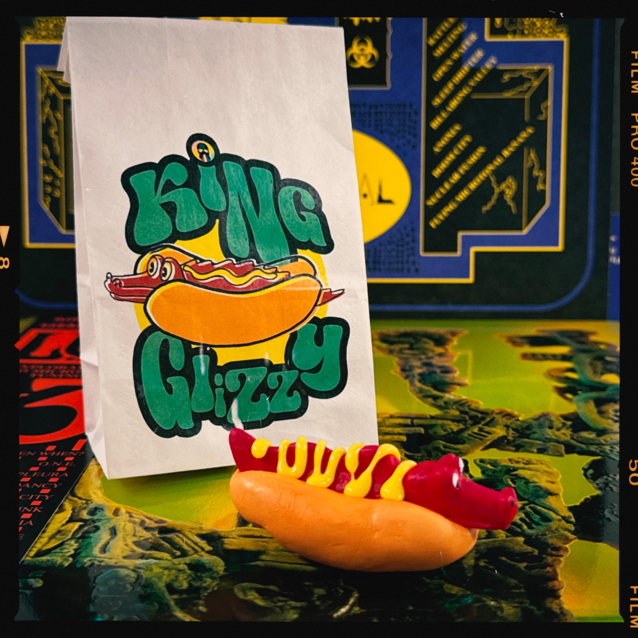 In collaboration with one of my favorite Gizzhead Artist Echo Barrett, we bring you the King Glizzy! This custom made hand sculpted and hand cast fig features the classic KG Lizard on a hot dog bun in a custom printed takeout bag!
