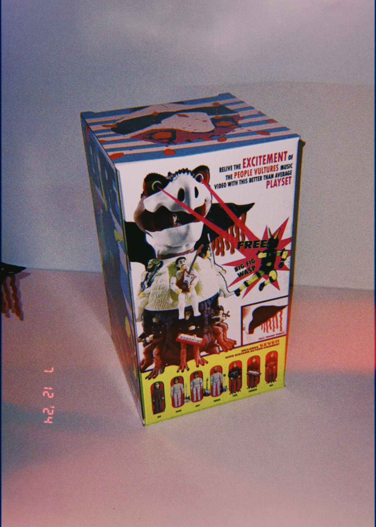 People Vulture Action Playset y'all! This is a 12" toy sculpture... designed, created and hand painted by me, Gizz super fan Dr. Cos McEvil III. This is a work of f*cking art. Large resin sculpture based on the People Vulture from King Gizzard's Epic (and now classic) music video. Includes EIGHT exclusive Gizz figs made specifically for this playset, including Eric, Big Fig Wasp, a cloaked Stu and more. Ships in a custom printed display box.