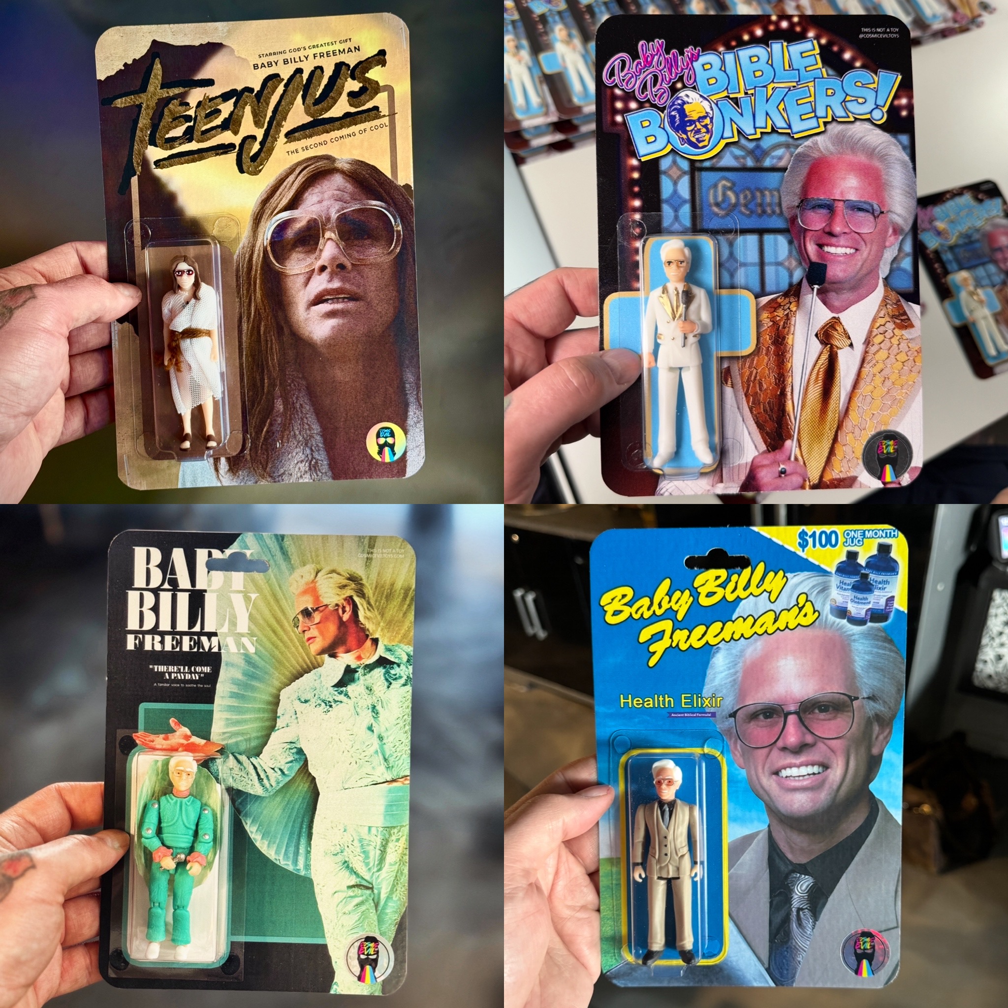 For the distinguished Baby Billy Collector! You get one (1) each of the Health Elixer, Payday, Bible Bonkers and Teenjus PLUS a bonus EXCLUSIVE Baby Bill Action Figure! (This extra fig will only ever be sold through this exclusive collection).
