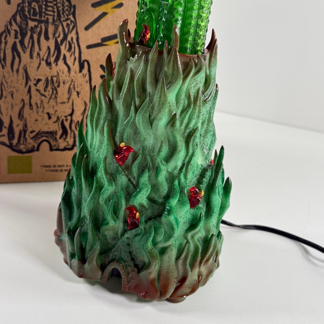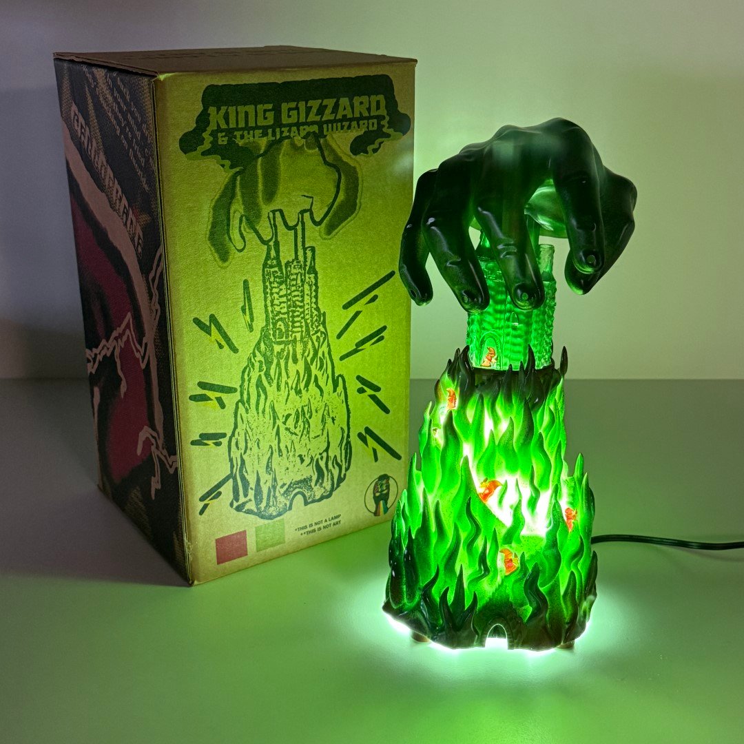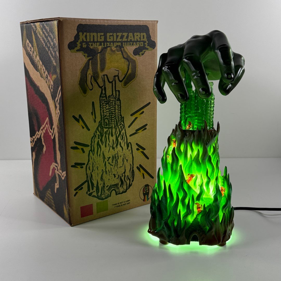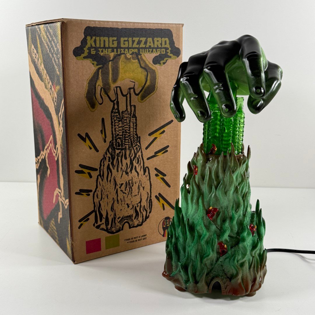 Scratch built art sculpture lamp based on Jason Galea's I'm In Your Mind Fuzz LP cover artwork, based on the 1983 Fortress Video Game box art. This is 13" tall with a corded 100w LED light. Comes in a custom box.